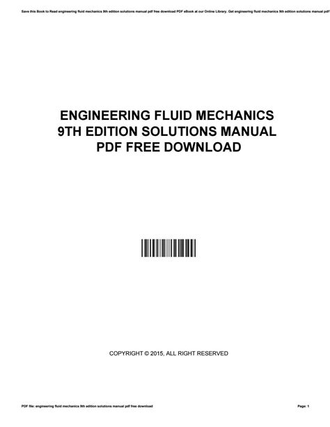RVC - Free PDF ENGINEERING FLUID MECHANICS 9TH EDITION SOLUTIONS MANUAL FREE DOWNLOAD Kobo Gutenberg